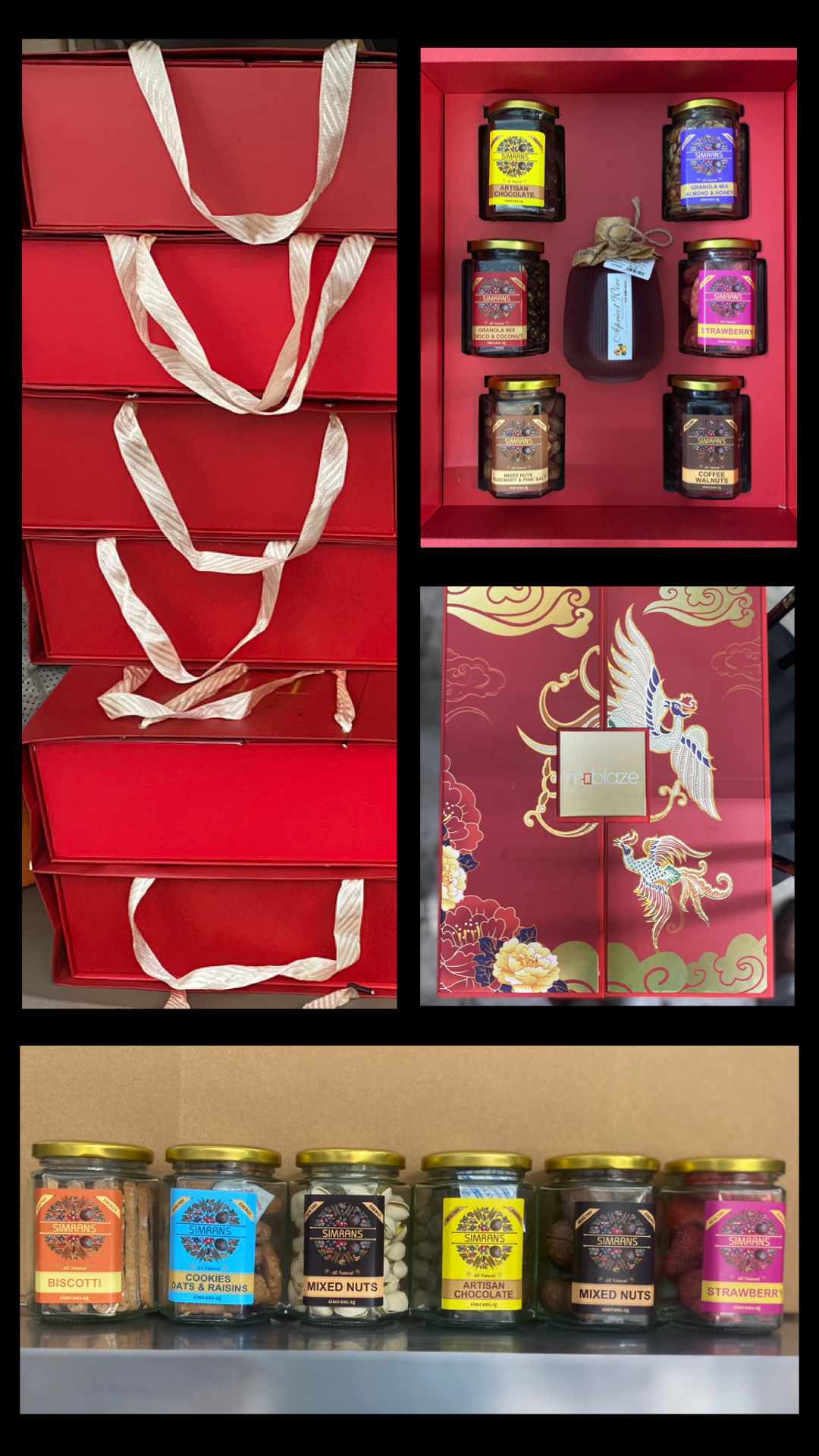 Add joy, flavor, and elegance to your celebrations with Simrans’ Festive Hampers – beautifully packaged collections of our finest handmade treats, perfect for gifting or indulging.