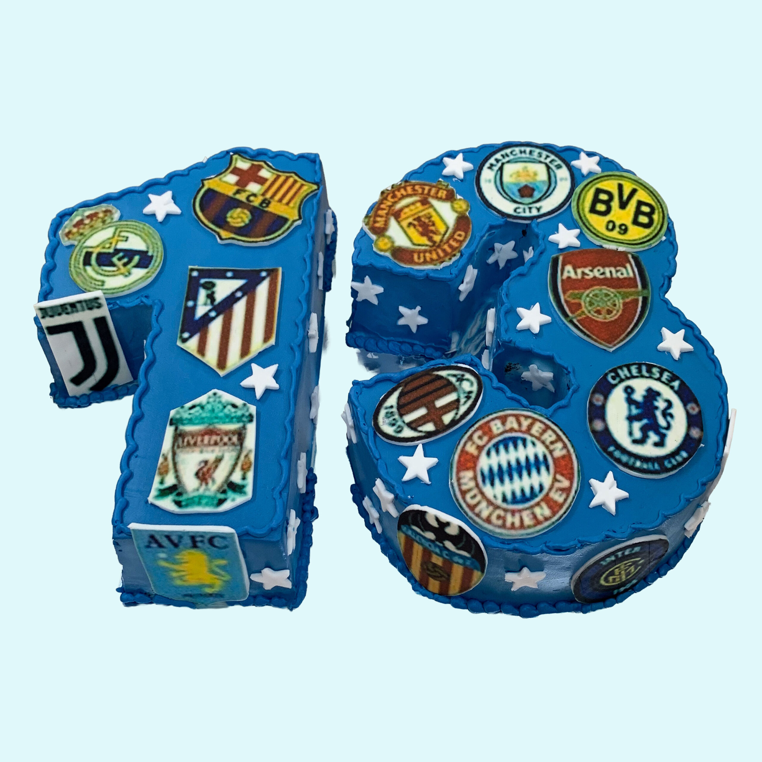 Celebrate a football fan’s milestone 13th Birthday with this vibrant number cake featuring iconic club logos from around the world.